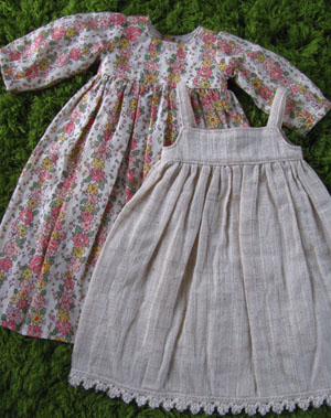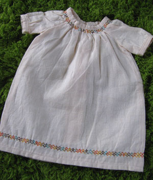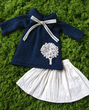 ワンピースの裾には木のレースモチーフを縫い付けてあります。