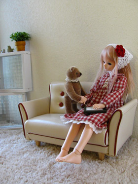 TFchoiceのエミリーです。 3日にぽちって、ウチにやってきたのは13日でした。 土日になるのを待てずに分解&洗浄、アイを換えて夜に撮影をしました。 ウチにいるどの子よりもチークが濃くて、目元にはほんのりとピンクが乗ってるのでほわんとした雰囲気があります。それがもうすごーく可愛いです。 眉毛は薄くてたれ気味なので、エミリーなのに大人っぽすぎない所が個人的に凄く嬉しいです。 ウチに来てくれたのがこの子で良かったなぁ。 そしてエミリーって結構アイホールが大きい事にびっくりしました。 てっきり顔の傾向が似ているトミと同じくらいの大きさか、むしろ小さいくらいだろうと思って最初に16mmのアイを用意していたのですが、実際に当ててみたら想像より白目が多くてびっくり。 ドールの目は黒目がちが好きなので、あわてて会社帰りに天すみまで18mmのアイを買いに行きました。 エミリーはずっと憧れの子だったので、ウチに来てくれたのが本当に嬉しいです。 名前はエレンにしました。 これからこの子もよろしくお願いします。 PR 今日はドルパでしたね。 お天気が良かったので絶好のイベントびよりだったでしょうねー。 そんな中、私はひさしぶりにおうちでソファを使って写真を撮っていました。 フィンのつけてるペンダントはこの前お買い物したものです。 鳥かご・鍵・淡いグリーンの石と好きなものがこれでもかと詰まってて一目ぼれでした。 可愛いアクセサリーを見つけると嬉しくなります。 拍手ありがとうございました! 続きにお返事です。 つづきはこちら