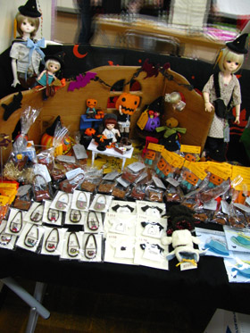 PR 大分お礼が遅くなってしまいましたが…ドールショウにて、かぼちゃ小間物店に遊びに来て下さった皆様、本当にありがとうございました! 店主のかりのさん、お疲れ様でした&本当にありがとうございます。 今回のドルショはお隣は豪華だし、かりのさんのハロウィンはセットは本格的で可愛いしと、ホントあちこち目の保養だらけくで大変幸せなイベントでした。 そしてアフターではまたまた素敵な方たちと一緒の楽しい打ち上げに混ぜてもらって、夏の終わりに良い思い出が出来ました。ああー、楽しかったなぁ…と余韻にひたる1週間でした。 そんな私はといえば…結局、イベント前に販売物の画像を上げられず…もし見に来て下さった方がいらっしゃったら本当にすみませんでした。 それにも関らず、嬉しい事に全ての商品が旅立っていく事が出来ました。手に取って下さった皆様、本当にありがとうございます!今回は事前に商品写真を撮るのを忘れ、会場でも自分の商品をアップで撮るのを忘れ… 辛うじて撮った写真はこんな感じです。 …見難くてあれなのですが、今回はおばけ柄と羊フードを作って行きました。 気をつけてはいますが、もし商品に不具合などありましたら出来る限り対応させ頂きたいと思いますのでどうぞお気軽にご連絡頂ければと思います。 …次は「プレビューは前もってお知らせ出来るようにする。」をモットーに頑張ろうと思います。 そして忘れちゃいけない並べ並べジミー。 大ジミーも登場して大分すごい光景になっていました。うーんさすがジミー。 そんな感じですごく楽しいイベントだったのでした。 遊んで下さった皆様、改めて本当にありがとうございました! 拍手ありがとうございます。 17日までに頂いた拍手には全て直接お返事させて頂きましたー。