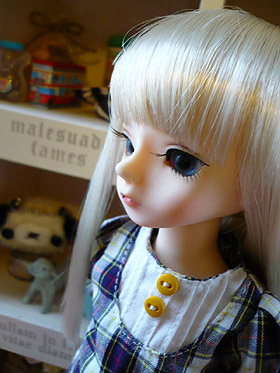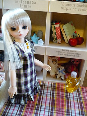 ドールに丁度いい棚を買ったので、それっぽく小物を入れてみました。