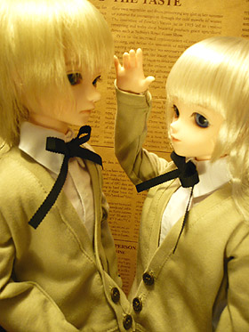× [PR]上記の広告は3ヶ月以上新規記事投稿のないブログに表示されています。新しい記事を書く事で広告が消えます。 新しい子がやってきました。 もっと早くに着いていたのですが、ボディーを洗ったまま泊りがけでお出かけしていたので今日まで写真が取れませんでした… 長くなりそうなのでたたみます リィン「えと、双子の弟のリオンです。」 リオン「は、はじめまして。」 新人さんはメイボーイでした。 基本はメイなのにちゃんと男の子ですよ!!すごいなぁ…。 公式や他のサイトで見かけるメイボーイはメイだけどきりっとしてて男の子!って感じなのですが、ウチに来たのは何だか今にも泣き出しそうでおとなしそうな子でした。でもそれが可愛くてたまりません。 おかげでリィンの双子のお兄ちゃんにしようと思ったのに弟に変更です(双子で兄とか弟とかはそんなに関係ないとは思うのですが…) これからこの子もよろしくお願いします。 そして… フィン「おやおや?」 フィン「エデン君、背のびた?」 エデン「うん。実はダンディボディになったんだ。」 フィン「おおー、男の子はすごいなぁー。背が伸びるんだねー。」 エデン「そ、そうかな?」 そんな感じでエデンをダンディボディにしてしまいました。 この身長差がたまりません。今度じっくり比較写真とか撮ってみたいと思います。 しかし、ダンディボディはちょっとふとももが太いようで、TFの制服のズボンがピチピチです。 PR COMMENT COMMENT FORM